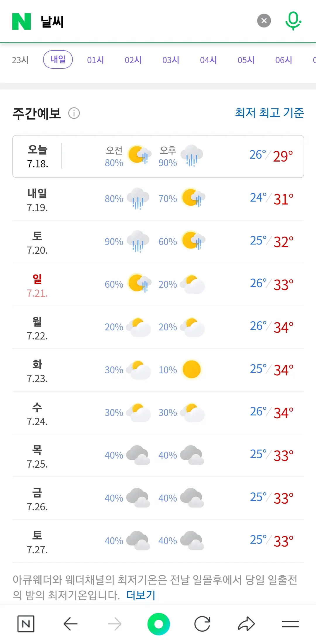 2. 휴대폰에서 네이버 들어가서 날씨 검색으로 알아보는 방법