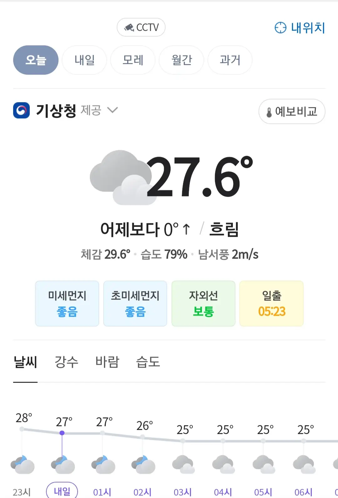 오늘뿐 아니라 내일의 날씨, 주간예보를 포함해서 다양한 정보를 얻을 수 있고 아래 사진에 내 위치 옆에 있는 CCTV를 누르시면 마지막 사진처럼 실시간 고속도로의 CCTV 영상을 보실 수 있습니다.